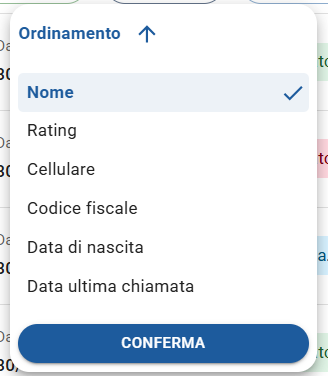Per ordinare la ricerca dei clienti in base a una delle proprietà presenti nella lista: