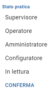 Il filtro permette di filtrare la lista per lo stato della pratica.