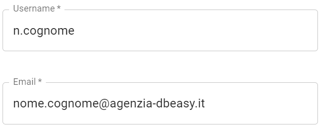 4. In questo modo i campi "username" e "email" verranno generati automaticamente, sarà comunque possibile editare le informazioni presenti all'interno.