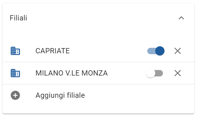 8. Assegnare una o più filiali di appartenenza e attivare lo switch per definire quella di default.