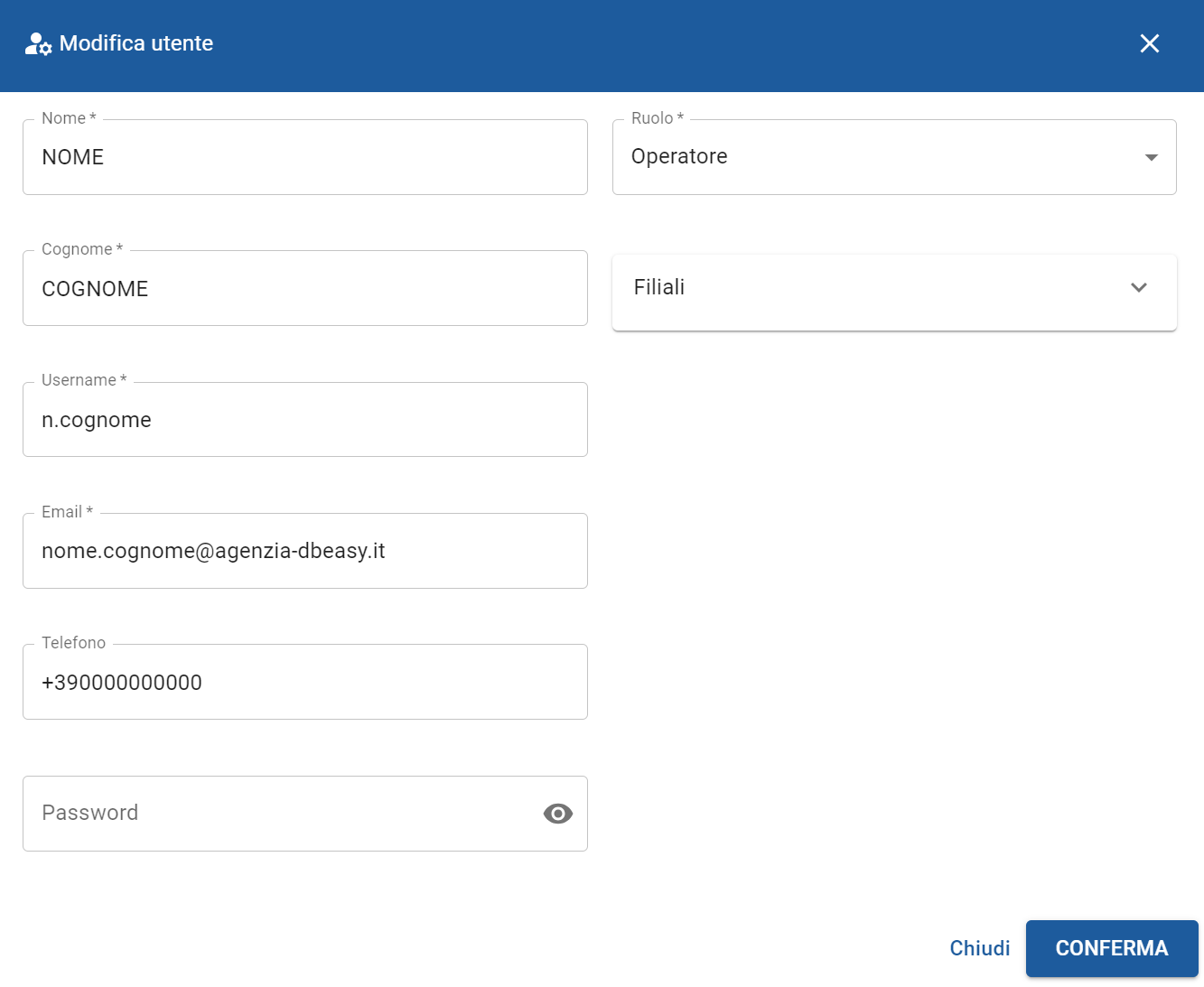 3. Modificare i campi e una volta terminato cliccare su "Conferma" in basso a destra.