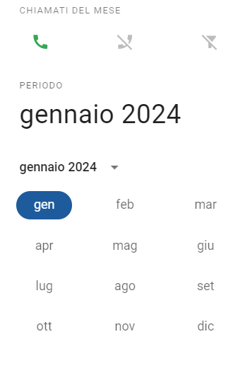 Il filtro permette di selezionare il mese e l'anno in cui è stato effettuato il caricamento dei clienti, inoltre è possibile filtrare la lista dei clienti chiamati, non chiamati o visualizzarli entrambi.