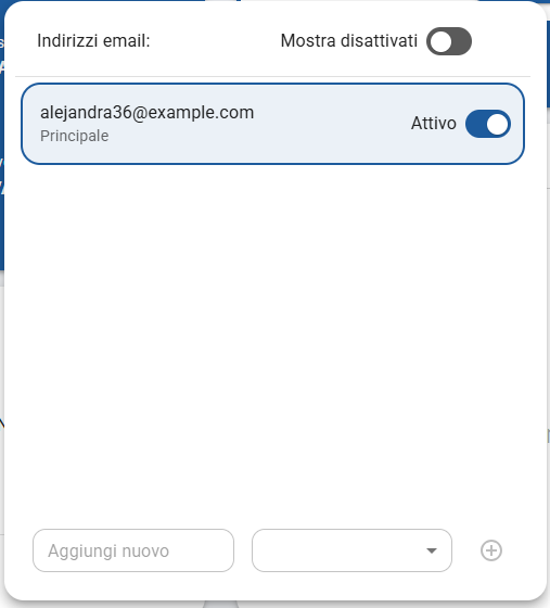 2. Cliccare sulla casella "Aggiungi nuovo" e digitare un nuovo indirizzo email