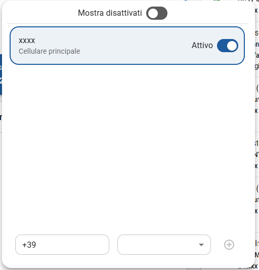 5. Cliccare sull'icona a sinistra per contrassegnare come disattivo il numero di telefono e quella a destra per contrassegnarlo come attivo
